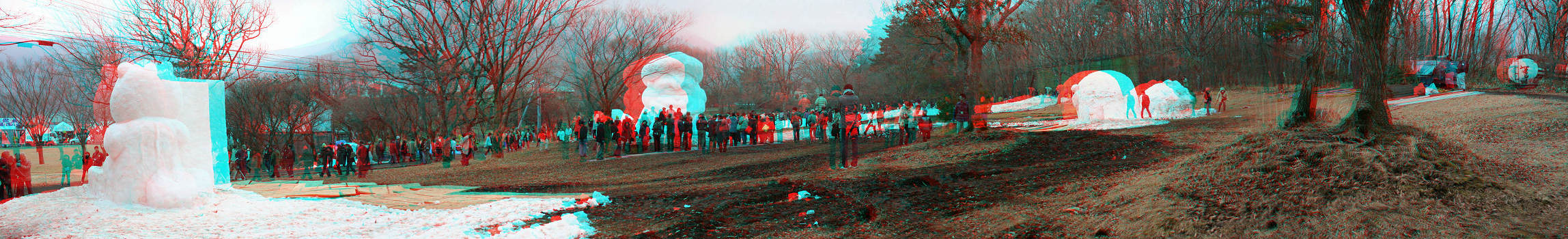 1週間前に雪が降ったのでその雪で作りましたが今年は雪不足で雪像の数も少ない