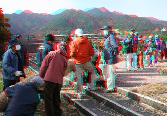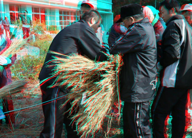 佐伯市上浦町のしめ縄作りを立体写真で紹介します。