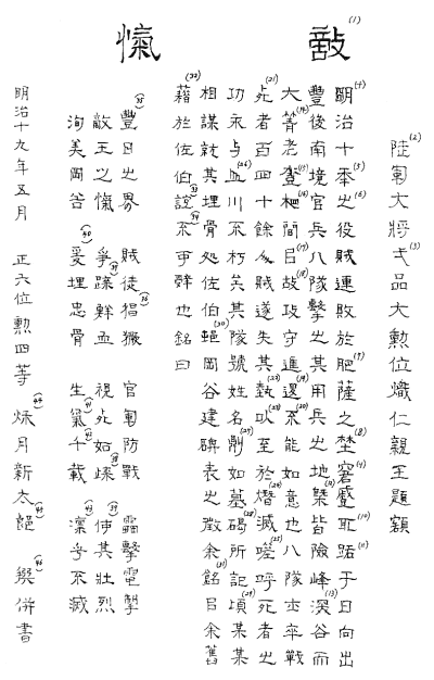 碑文は佐伯出身の秋月新太郎 題額は有栖川宮熾仁親王の書です