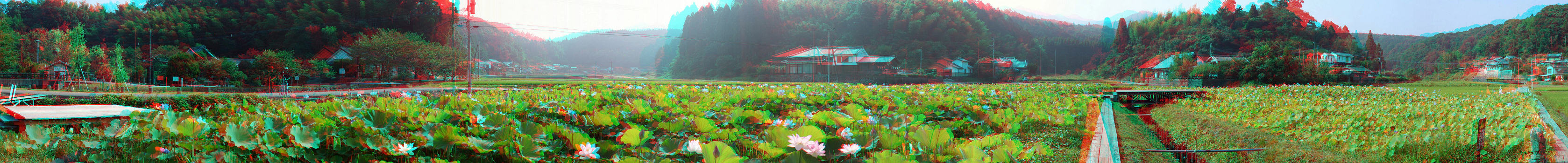 立体写真 石仏前の蓮畑 1