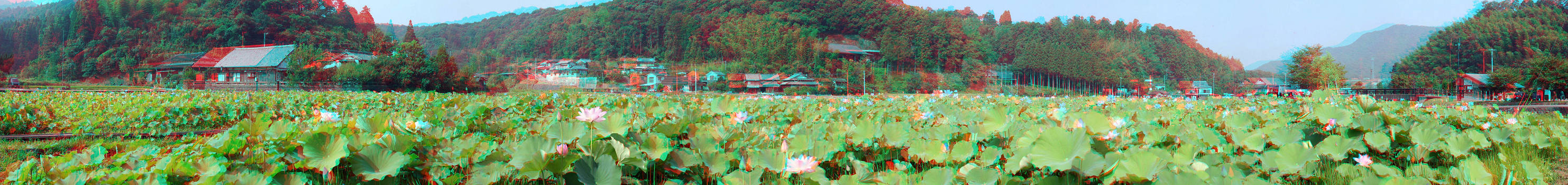 立体写真 石仏前の蓮畑 2