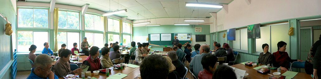 教室で矢野徳弥さんのお話を聞きます 本匠村は学術的に見るといろんな面白いところだそうです 佩楯山も昔は海の底だったとか化石の話 ここのホタルは飛翔高100mもあるなどお話を聞きました