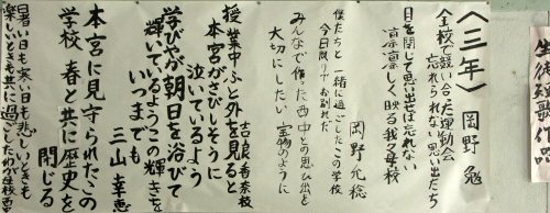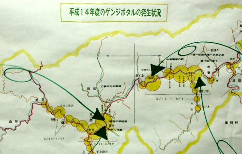 廃校の日に書かれたのでしょうか子供たちの短歌が目にとまります ホタルの発生状況図を見るとこの西中学附近が一番多いことが分かります