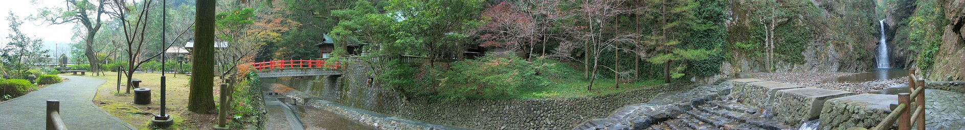 暁嵐の滝公園内の瀧三柱神社から滝まで