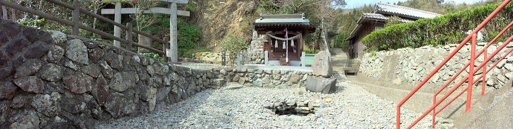 大入島のこの浦は、日向泊と名づけられた。弓のさきでほられた井戸は神の井とよばれ、いまもだいじにのこされている。また、日向泊の海岸には、み船をつないだというふたつの大岩ものこっており、海人たちが、み船を見おくるときたいた火明りは、いまも日向泊につたわるドンド(正月十五日、鏡もちを竹のさきにつけ、たき火でやいて食べる行事・左義長)のおこりであるといわれている。