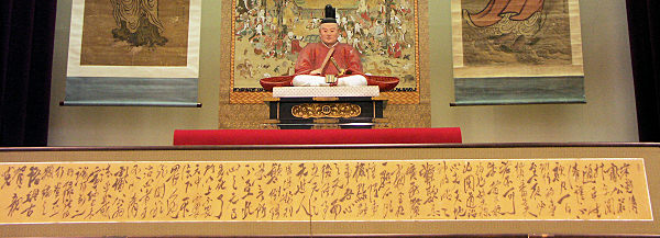 初代佐伯藩主毛利高政の像とその下が毛利高標直筆の書(養賢寺所蔵)![]() |
