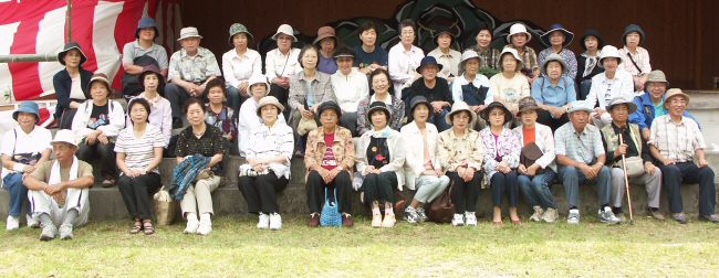 椿原祭典会場にて参加者記念写真