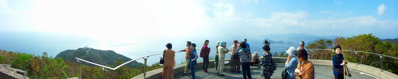 鶴御崎灯台が眼下に見えます 昔は鶴が来る御崎(長い半島)だったということで鶴御崎というそうです 豊後水道の真ん中にある水の子島灯台もかすかに見えました