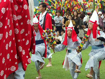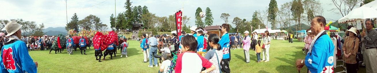 大きな獅子4頭と子供たちの押したり引いたり掛け合いが面白い