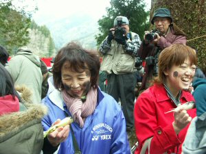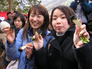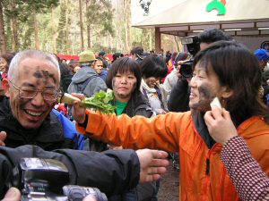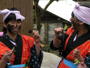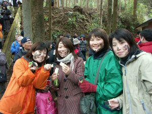 炭を塗られた1000本の大根が用意され参加者全員に配られ 荒神が降りてくると 誰彼と無く