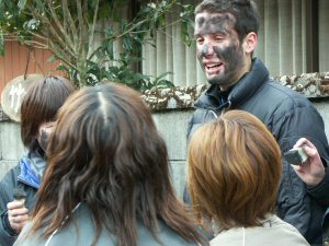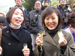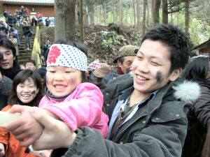 ご祝儀替わりに「祝わしておくれ」と言いながら墨を塗りつけます 昔鉱山で落盤があり