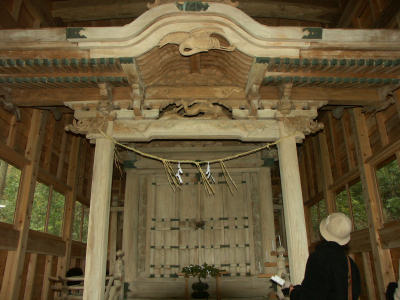 木浦鉱山が栄えた頃 「すみつけ祭り」が始まりました 正式な祭名は「山上がり祭り」で 「すみつけ祭り」は通称です 鉱山が繁栄していた江戸時代にはこの木浦には3000人が住んでいましたが 今では76名しか住んでいません この祭りに参加するため何百人もが集まってきます 山神社神殿の建築は県南では他に類を見ない貴重な存在です