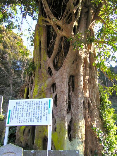 タブノキに巻きついた大きなアコウの木があります このアコウは元木を網状に根が絡み ノシラン・コバノカナワラビ他のシダ類・ホルトノキ・モッコク・ハゼなどが寄生し気根も出すなど その特性を発揮しています クワ科の亜熱帯植物で別名アコギとも言います 幹の途中から気根を出し着生してタブノキ等の母樹を枯死させます