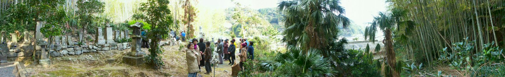 米水津村ではこの部落だけに竹が生えていますので竹の浦と呼ばれる地区です 近くにビロウ樹(ヤシ科の植物)が自生してここが北限だそうです 御手洗家の墓所の前です 一番古い墓には慶長九年の文字がありました 御手洗一族は瀬戸内海の海上を支配していましたが 安芸の「小早川」に破れ 米水津に漂着したが 瀬戸内水軍の伝統は受け継いでいた為 佐伯藩時代から 海上警備の任に当たり 長男は竹野浦で下浦の庄屋に 二男が蒲江浦の庄屋に(キャノンの社長 御手洗氏のご先祖です) 三男が日向細島の庄屋になったとのことです