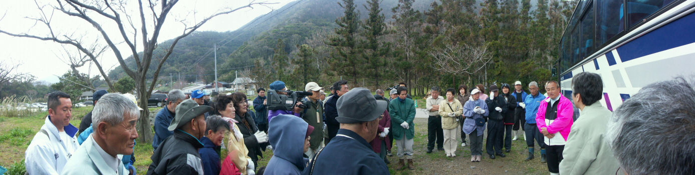 植樹を歓迎して受け入れてくれた成松区長の挨拶を聞く