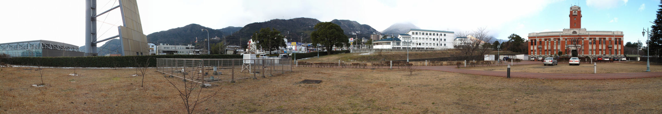 2010年1月14日 ビーコンプラザ前の赤レンガ二階建ての建物は大正13年に建てられた京大理学部地球熱学研究施設です 大震災以降鉄筋コンクリートの建物になり 明治から大正にかけて作られた赤レンガの建物は貴重な歴史的遺産であります。