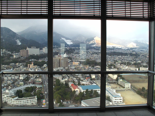 地上100mの展望台からは別府の町が一望できます ガラスの部屋ですから柱がありますが