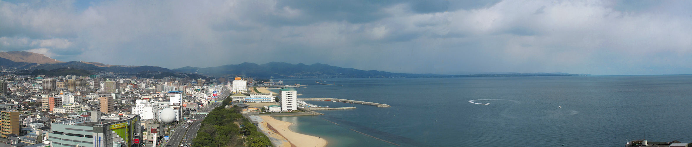 別府タワー展望室から撮影した別府市北部と別府湾