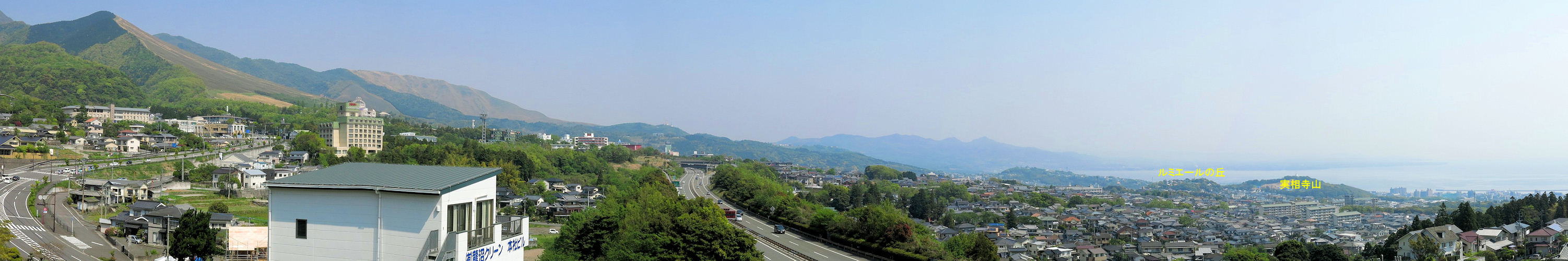 2013年4月28日撮影 左に扇山と大分自動車道 右に石垣原合戦のあった古戦場が見えます