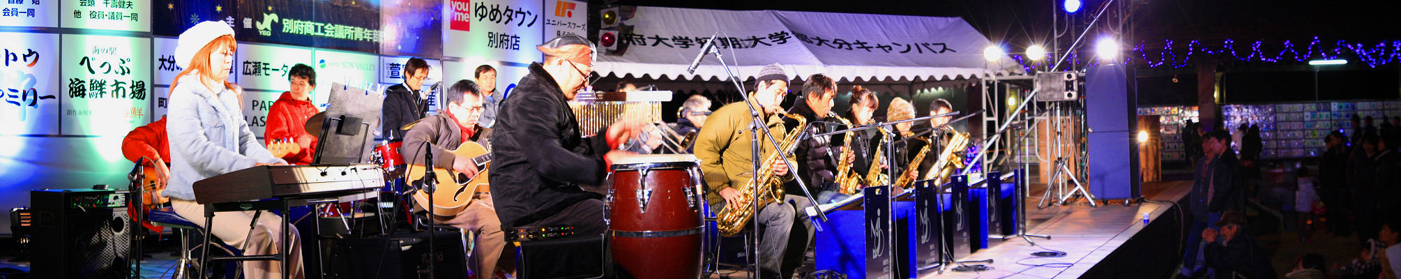 音楽祭もあり 写真はMID's JAZZ Orchestra の軽快なスウィングジャズ演奏風景。