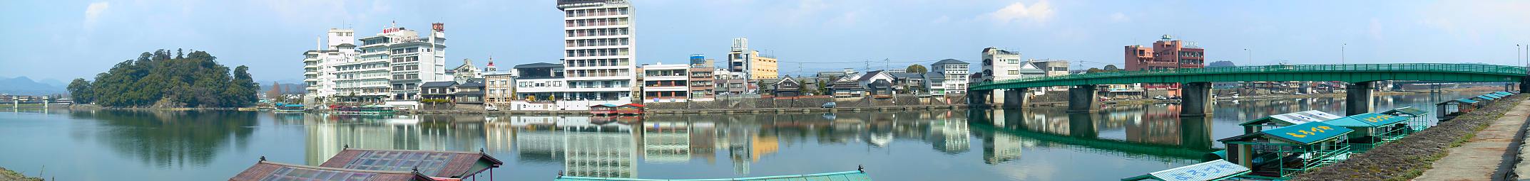 三隈川沿いの温泉街