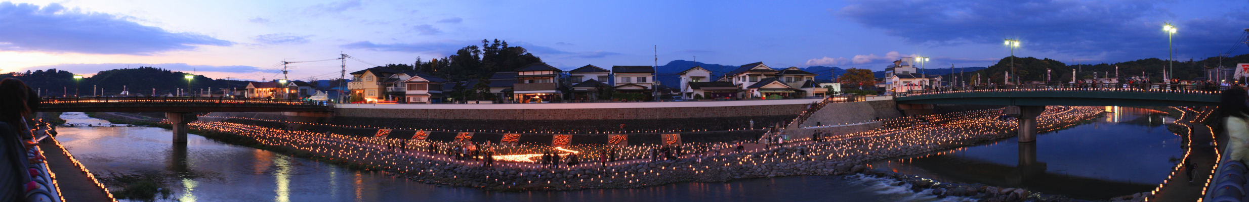 千年あかり 日が沈んだ頃あかりが灯り美しい