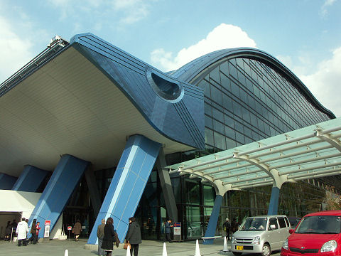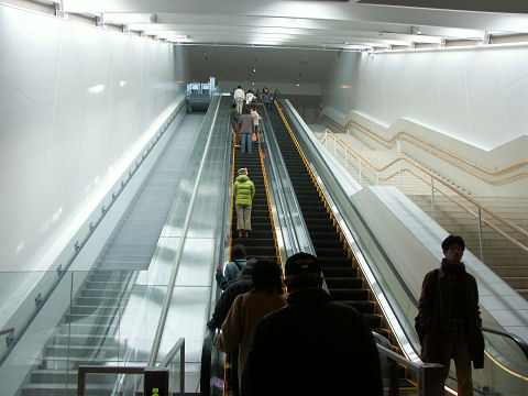 この長いエスカレーターを通って九州国立博物館へ行けます