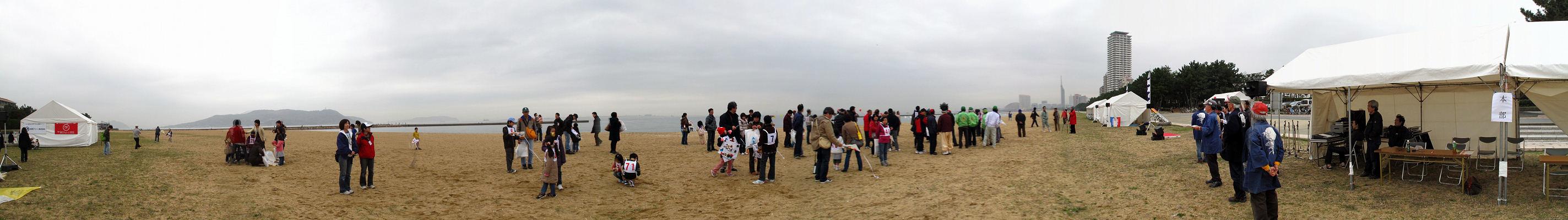 2010年3月14日 これから凧あげ大会の開会式がはじまります 今日は曇りで風も弱くおまけに黄砂もあります