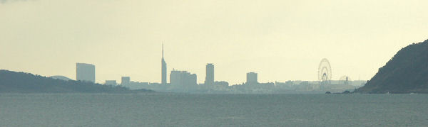 志賀島 能古島が見えます 能古島の右 毘沙門山との間に百道の福岡タワーが見えます