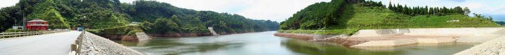 産山村のヒゴタイ公園とヒゴタイ大橋と大蘇ダムと大分県境の荻岳や近くのスズラン自生地のパノラマです。