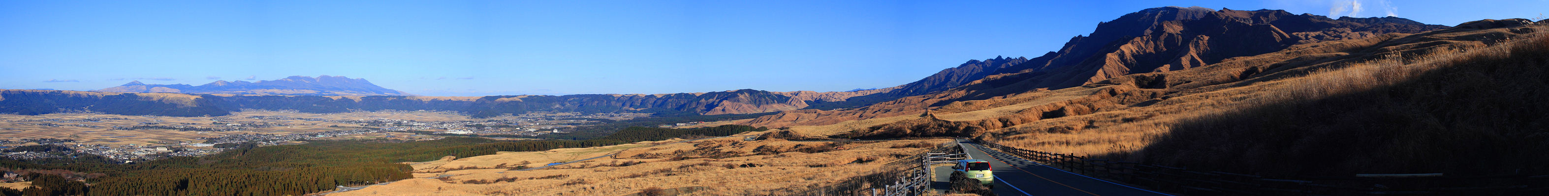 2008年12月26日 阿蘇外輪山と阿蘇盆地、画面右遠方に九州の屋根くじゅう連山がきれいに見えます。