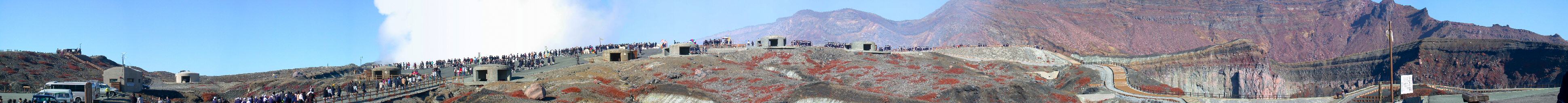 火口見物する人々