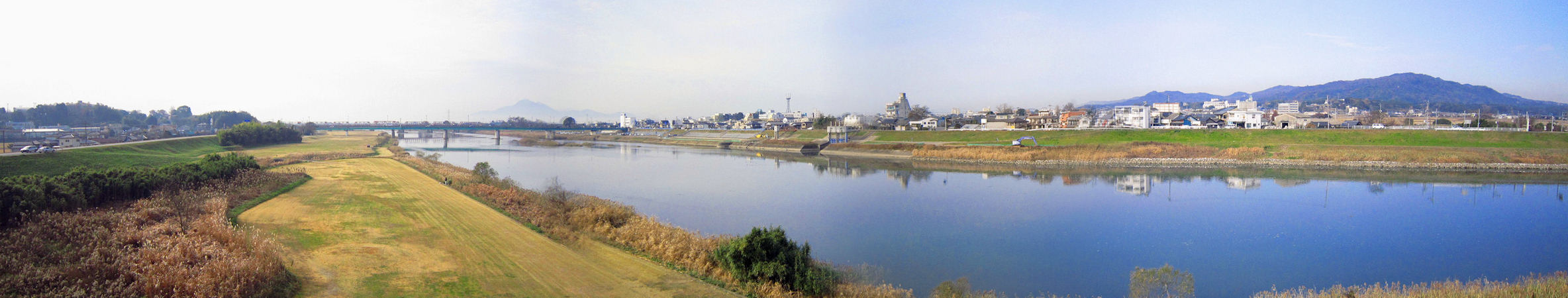 菊池川河川敷から凧を揚げて空撮したパノラマ 1