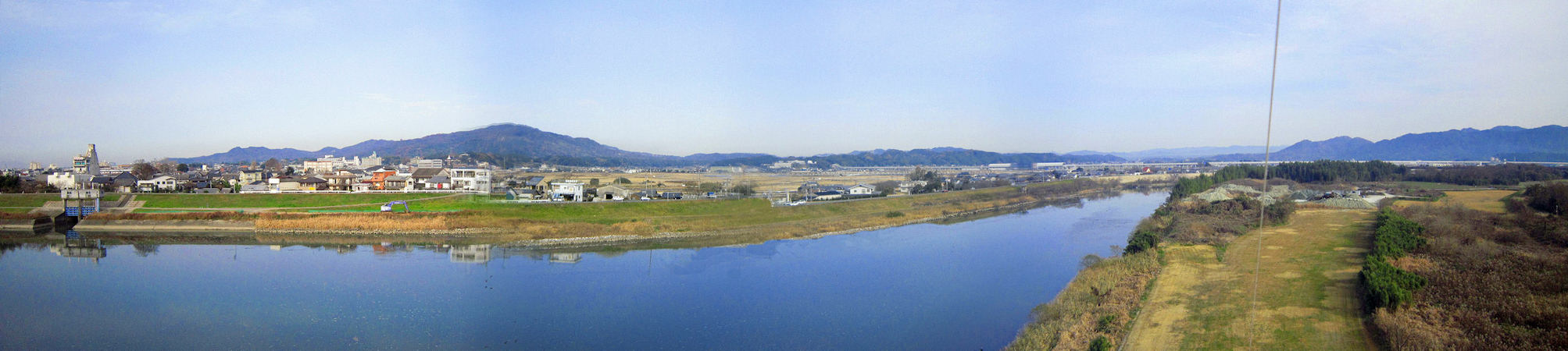 菊池川河川敷から凧を揚げて空撮したパノラマ 2