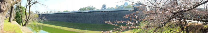 日本三名城の一つとされ、「清正流(せいしょうりゅう)」と呼ばれる石垣の上に御殿、大小天守、五階櫓などが