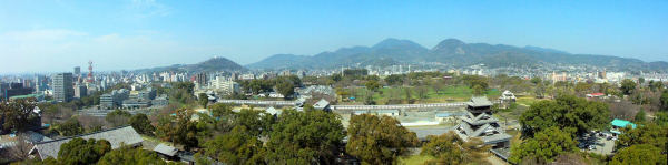 天守を含む御殿や櫓など主要な建物を焼失し、現在は、宇土櫓や東竹之丸の櫓群が残る。