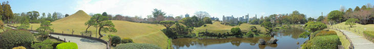 水前寺公園は、熊本藩の初代藩主細川忠利が寛永13年(1636年)頃から築いた「水前寺御茶屋」が始まり。