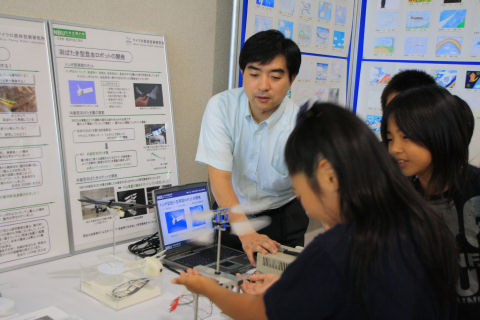 空港ターミナルビルでは日本文理大の先生がトンボの羽のような