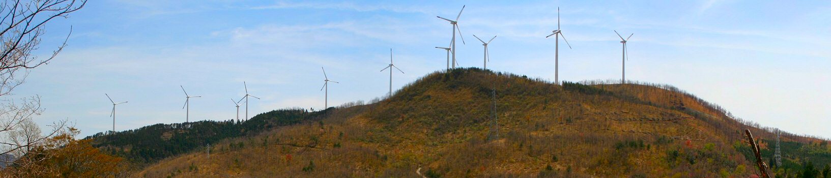 鏡山の頂上に林立する大きな風車