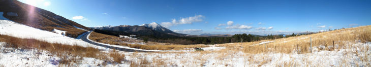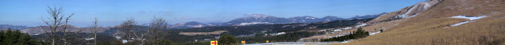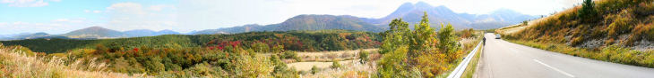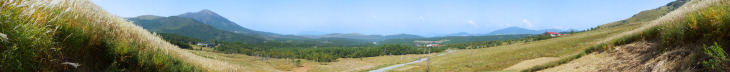 九重少年自然の家もあります、広がるすすきの高原風景をパノラマにしました。