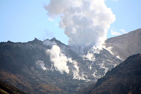 硫黄山からの噴煙