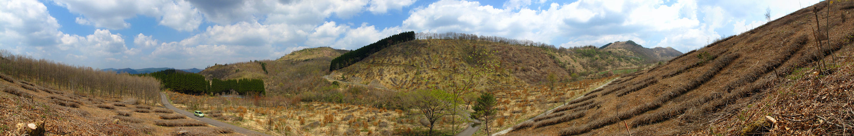 2011年4月25日 周囲の山は椎茸栽培の原木をたくさん寝かしています