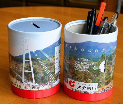 この上の写真を利用して作った 貯金箱 大分銀行でもらえますよ(平成19年5月)