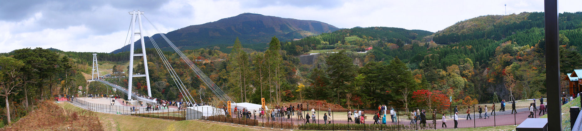 2006年11月7日 先月30日午後から開業した大吊橋に開業以降9日目の今日10万人を超えたそうです 町の予想では1年間の入場者を30万人とみていたそうで紅葉シーズンで好天も続いて大賑わい しばらくは渋滞が続きそうです