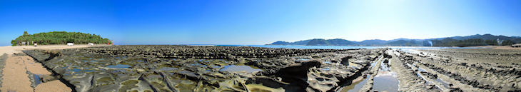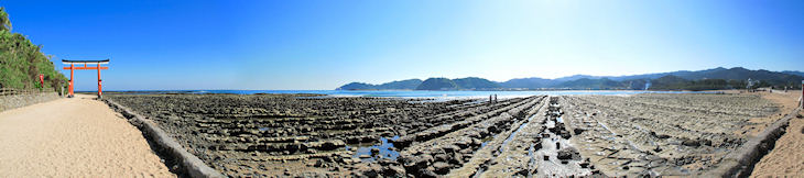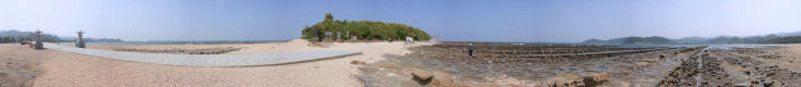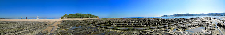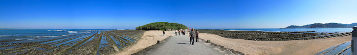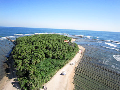 橋でつながっていますが潮が引いている時は橋を渡らずに浜を歩いて渡ることもできます。