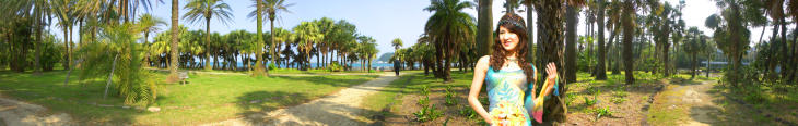 亜熱帯植物園園内には、県木のフェニックス、ビロウ、女王ヤシ、アコウ、パラボラチョ、ジャカランダ等が