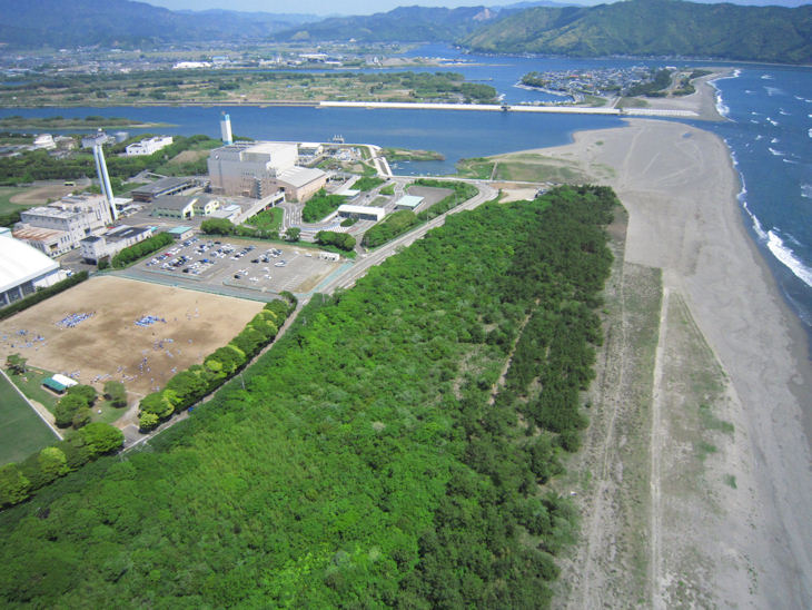 2014年4月 延岡市の万財海浜公園から凧を揚げて五ヶ瀬川の河口を空撮しました