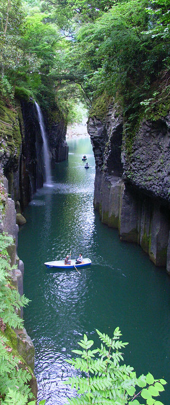 高千穂峡 真名井の滝と峡谷の岩壁