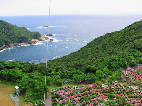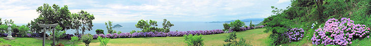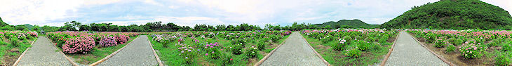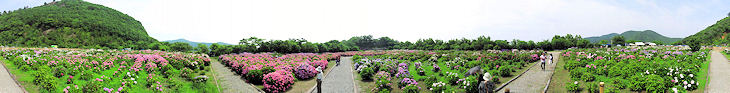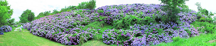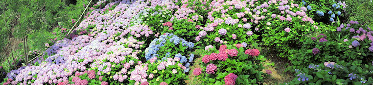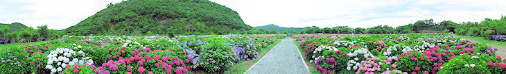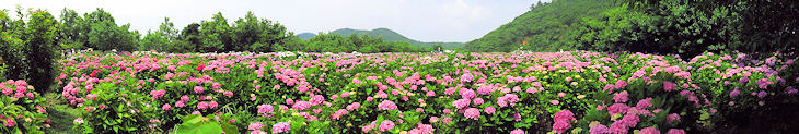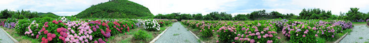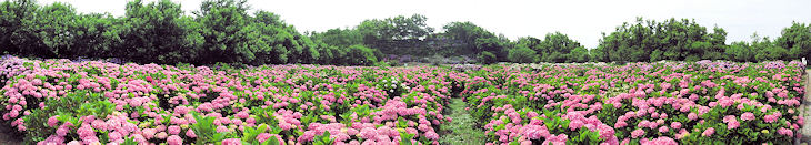 20万uに及ぶ「桃源郷岬」には色とりどりの200万本のアジサイが咲いていました。