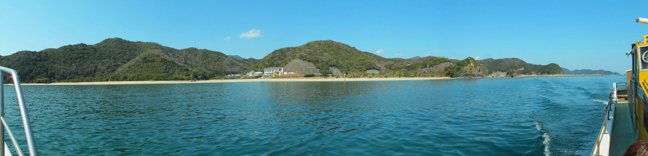 2013年2月25日 古江港を出港し最初に下阿蘇ビーチを沖から眺めます